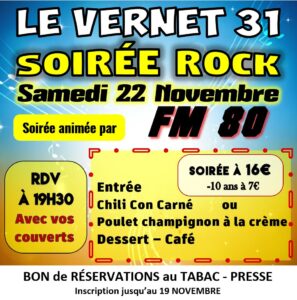 Venez nombreux, ramenez des amis, parlez-en autour de vous : faisons ensemble de cette soirée rock un grand moment de fête au Vernet !