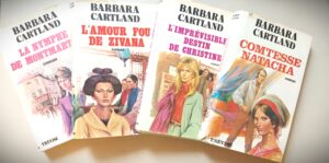 Les amoureux de romans sentimentaux retrouveront également Barbara Cartland, figure incontournable du roman romantique.