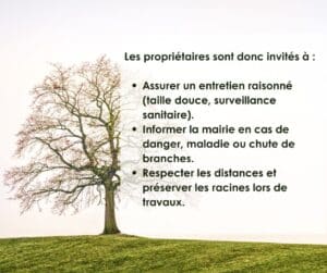 👉 Toute action (abattage, taille importante, déplacement) nécessite l’autorisation de la mairie, conformément à l’article L350-3 du Code de l’urbanisme.